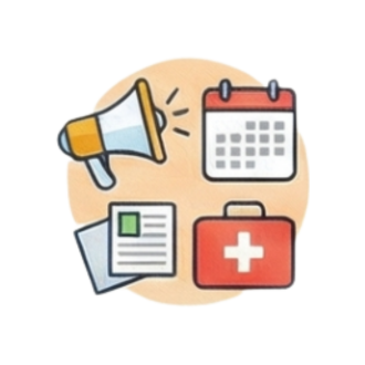 地震・台風などの気象警報、避難情報、防災訓練のお知らせ、不審者情報、地域の安全情報など、住人の安心・安全を守る重要な情報を迅速に配信。いざという時の信頼できる情報源として機能します。