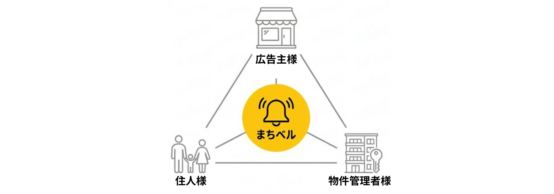 まちベルは、マンションのインターホンを通じて地域事業者の広告や生活関連情報を配信する、新しいくらし情報メディアです。